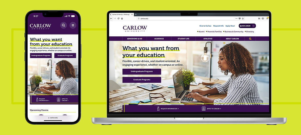 Redesign of Carlow University’s homepage hero image for conversion rate optimization. While their undergraduate numbers were strong, Carlow wanted to increase their number of graduate students.